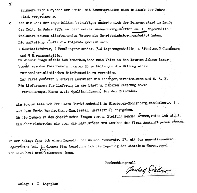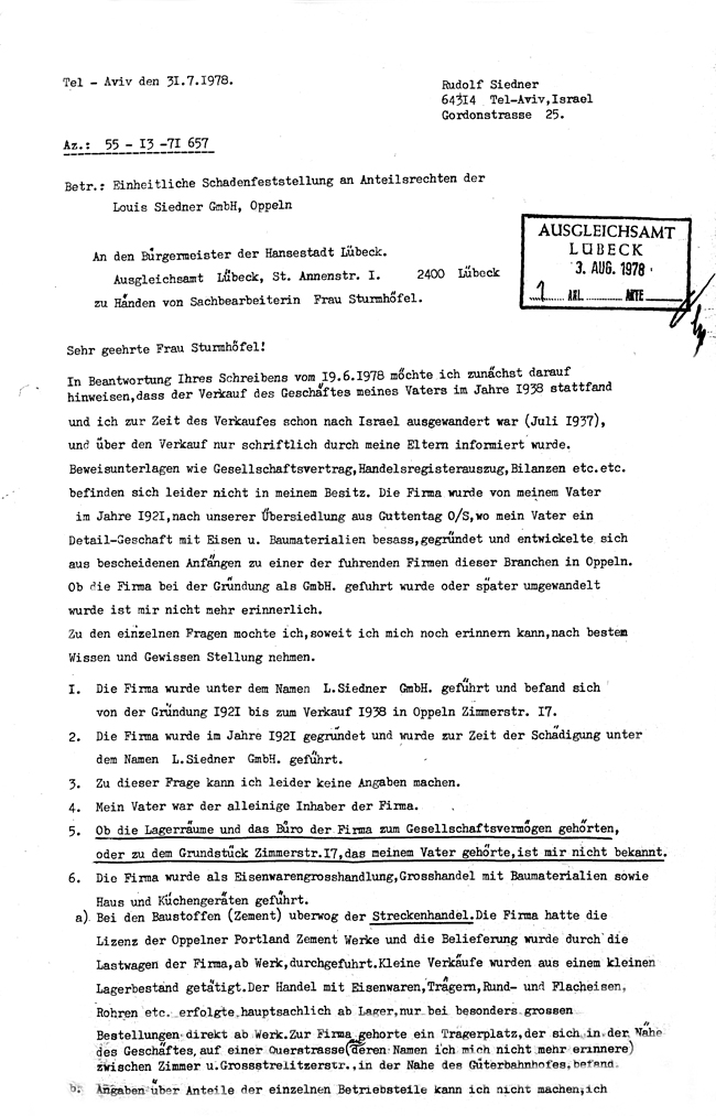 Quelle: Lastenausgleichsakte Rudolf Siedner, Bundesarchiv Bayreuth