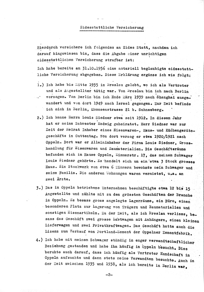Quelle: Lastenausgleichsakte Rudolf Siedner, Bundesarchiv Bayreuth