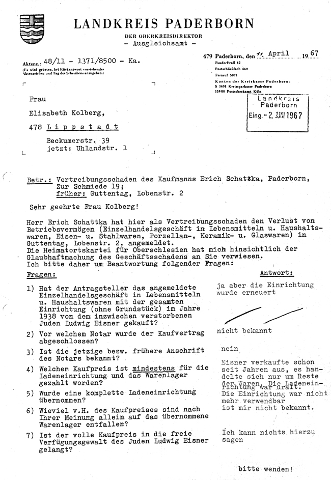 Quelle: Lastenausgleichsakte Erich Schatka, Bundesarchiv Bayreuth