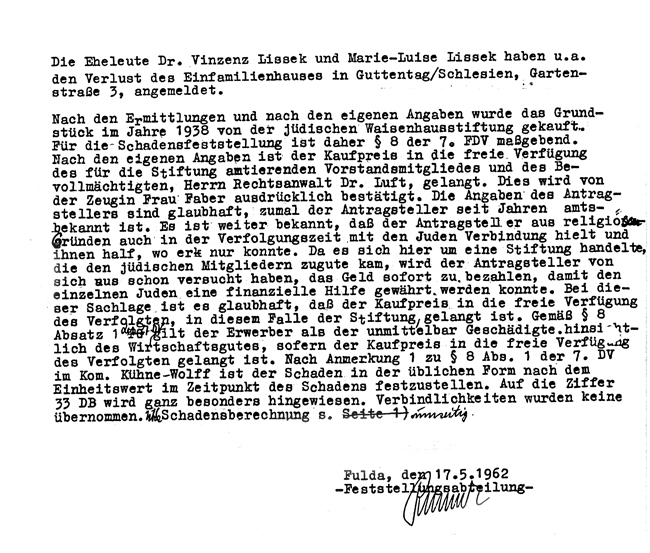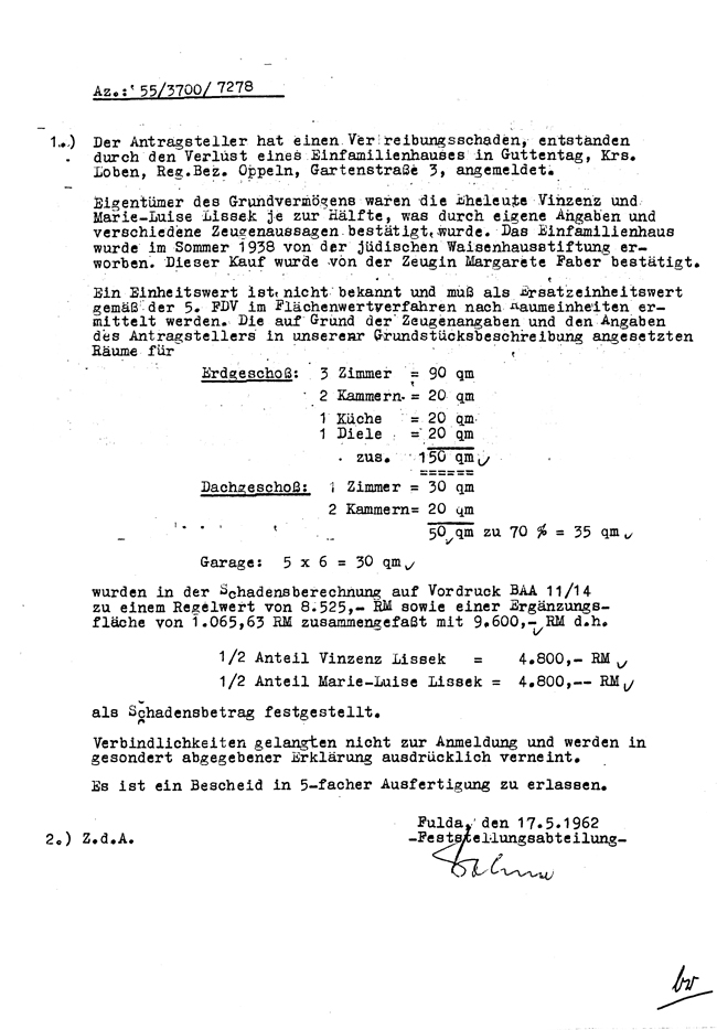 Quelle: Lastenausgleichsakte Dr. Vincent Lissek, Bundesarchiv Bayreuth