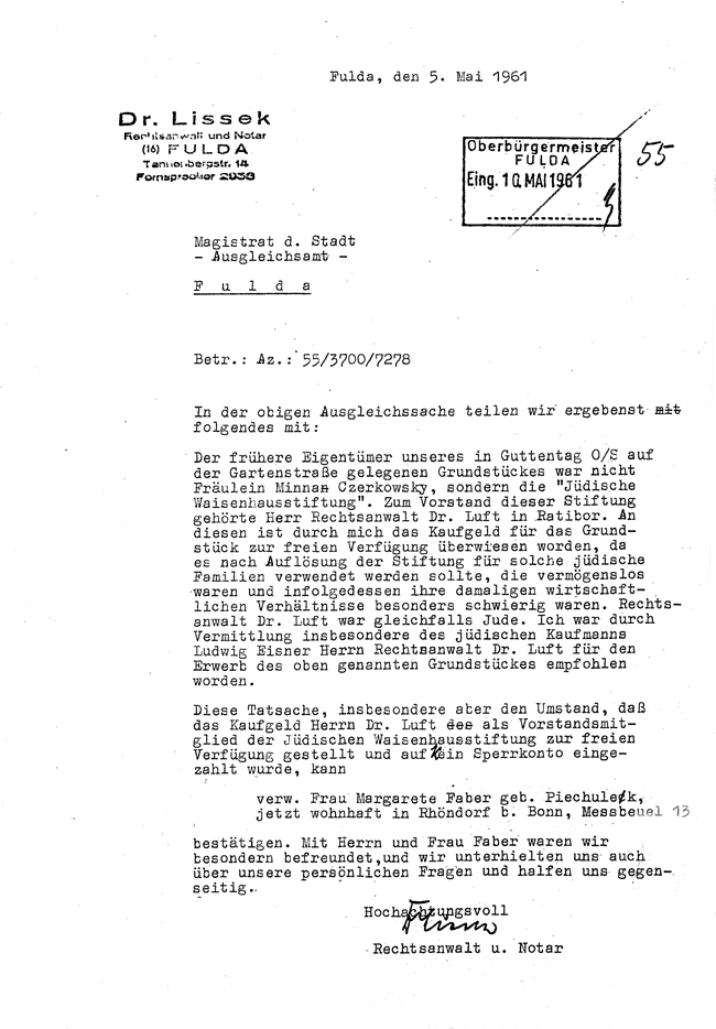 Zeugenaussage Dr. Lissek 5.5.1961