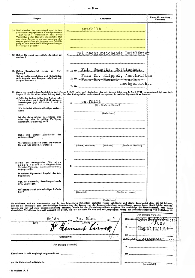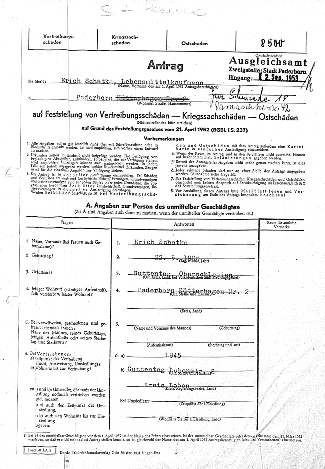 Quelle: Lastenausgleichsakte Erich Schatka, Bundesarchiv Bayreuth