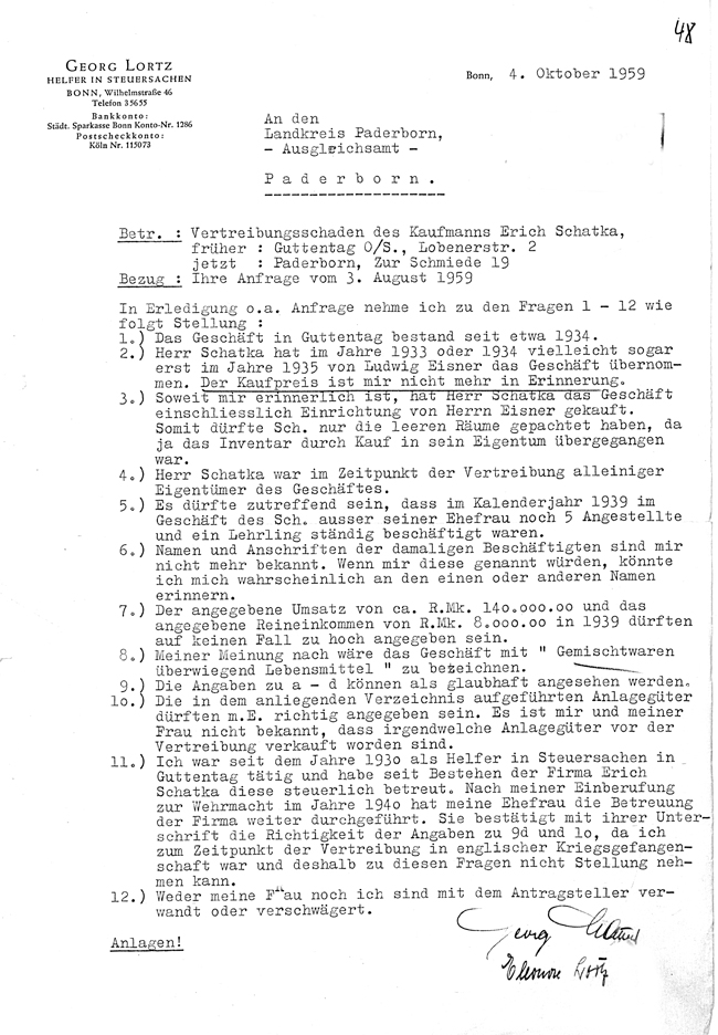 Quelle: Lastenausgleichsakte Erich Schatka, Bundesarchiv Bayreuth