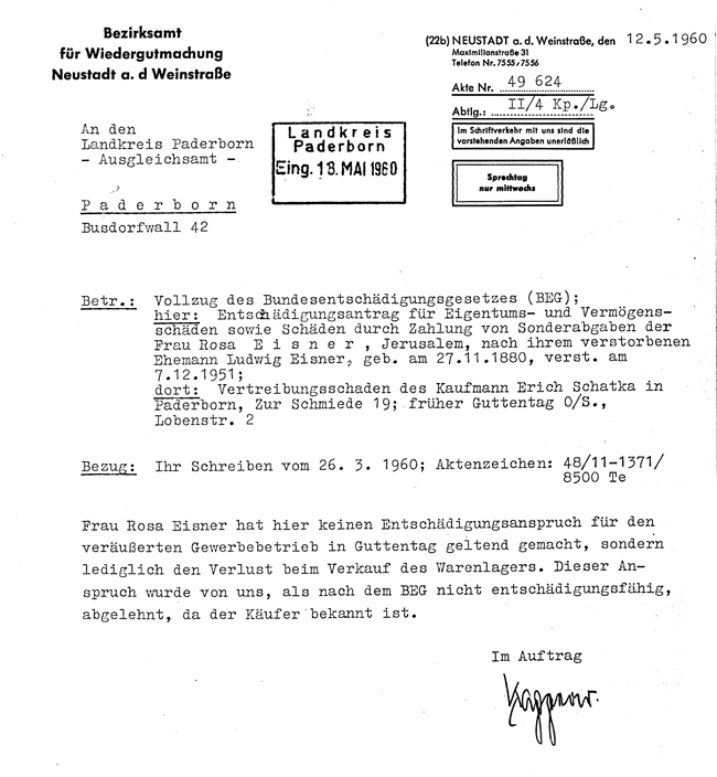 Quelle: Lastenausgleichsakte Erich Schatka, Bundesarchiv Bayreuth