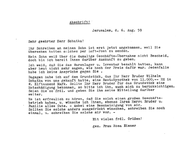 2 Schreiben von Rosa Eisner an Erich Schatka: